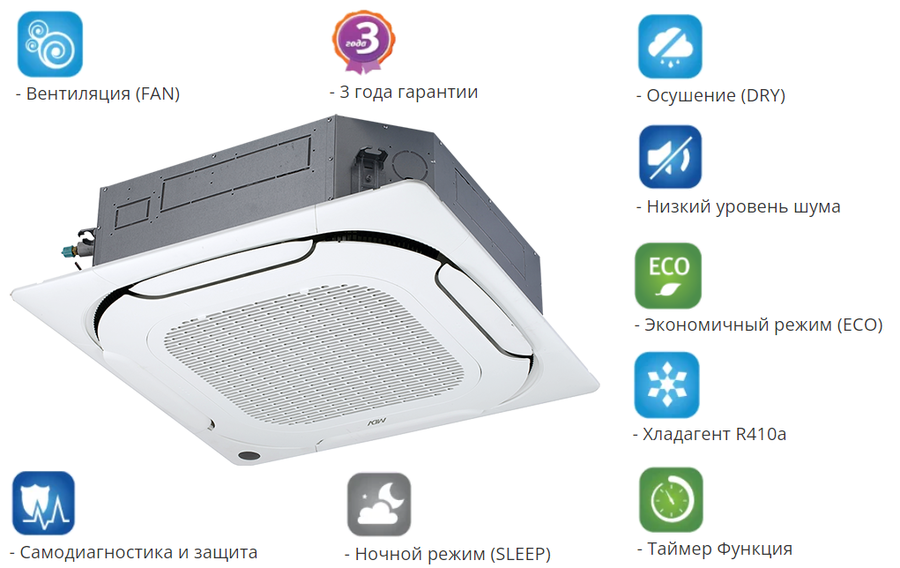 Представленный кассетный внутренний блок Mdv (Мдв) MDI2-140Q4DHN1 стабильно работает в режиме охлаждения даже при отрицательных температурах наружного воздуха, а также способен быстро создать оптимальный климат в помещении площадью до 140 квадратных метров. Устройство произведено в прочном корпусе высотой мм и рассчитано на установку в потолочном пространстве.