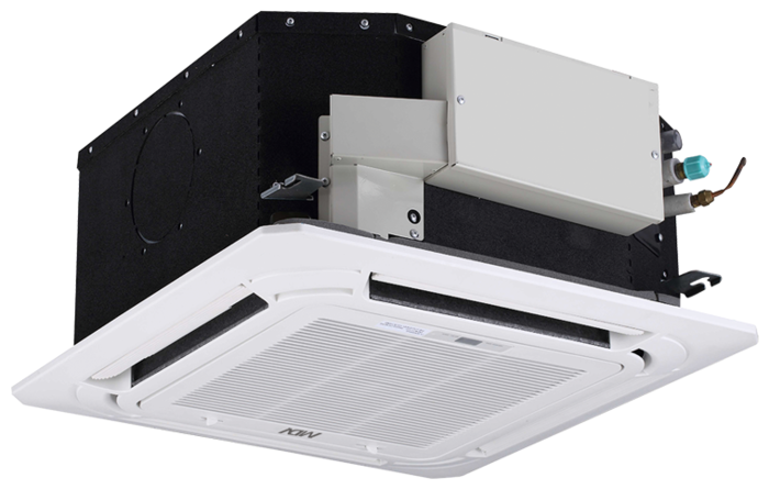 Четырехпоточные внутренние блоки кассетного типа (компактные) с круговым распределением воздуха поколения V6 серии MDI2-Q4CDHN1 представлены 4 моделями производительностью от 2,2 до 4,5 кВт. Оборудование широко используются в помещениях с подвесными потолками, например, в магазинах, офисах, школах, конференц-залах и т.д. Все модели оснащены дренажной помпой для отвода конденсата на высоту до 750 мм.