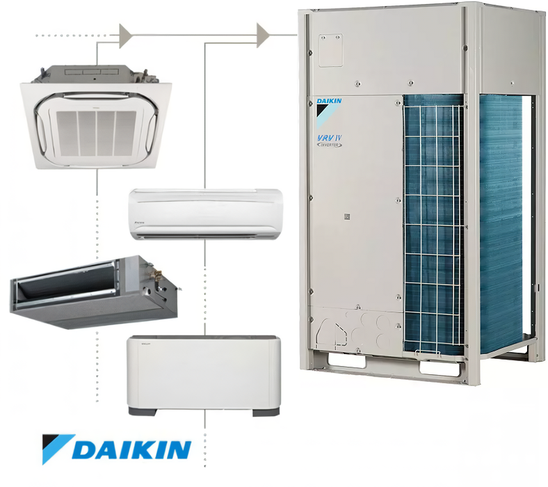 - Широкий модельный ряд внутренних блоков; возможность подключения стильных блоков бытовой серии (Daikin Emura, Nexura и др.)