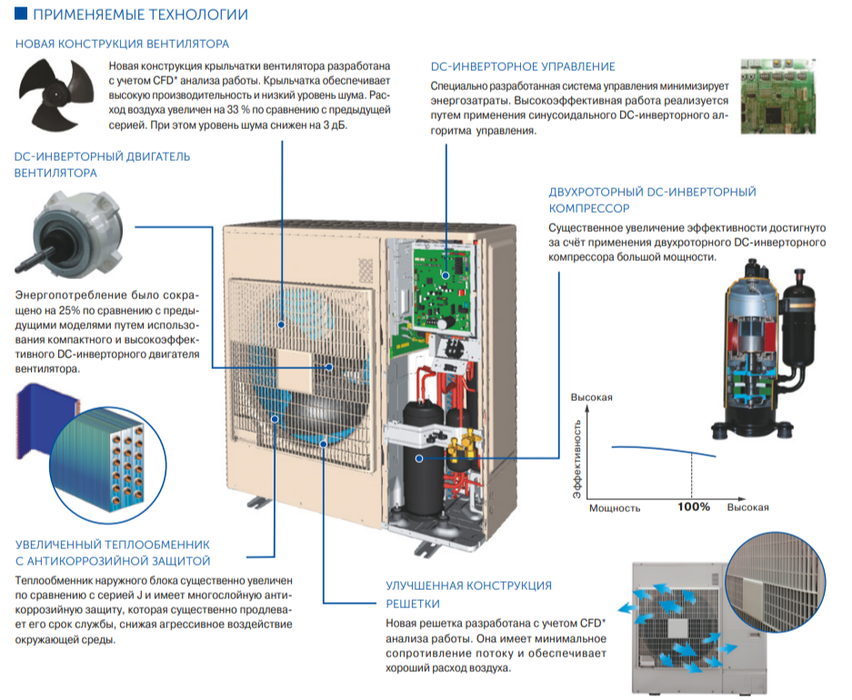 - Высокая энергоэффективность при любых нагрузках