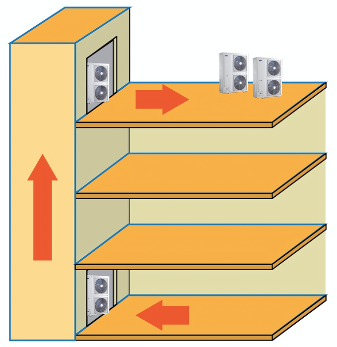 Серия Full DC Inverter VRF MINI Carrier включает в себя 12 моделей наружных блоков производительностью от 8 до 15,5 кВт (220 В, 1 фаза) и от 12 до 45 кВт (380 В, 3 фазы). Системы предназначены для коттеджей, многокомнатных квартир, офисных зданий небольшого и среднего размера. Имеет интеллектуальное управление, обеспечивающее независимый и индивидуальный контроль температуры в различных зонах.